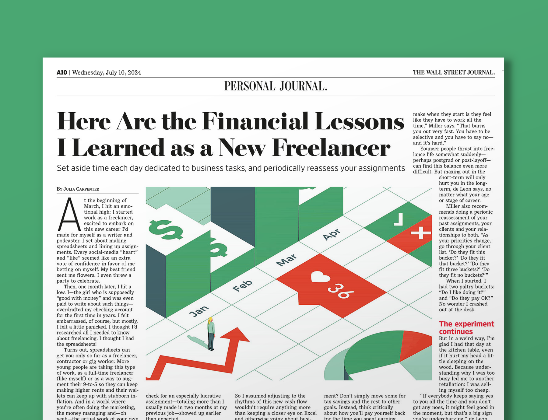 Financial Lessons I Learned as a FreelancerThe Wall Street JournalThe illustrated article talks about the importance of running your new business like a business and taking time daily to handle business matters and financials.Prev/ Next