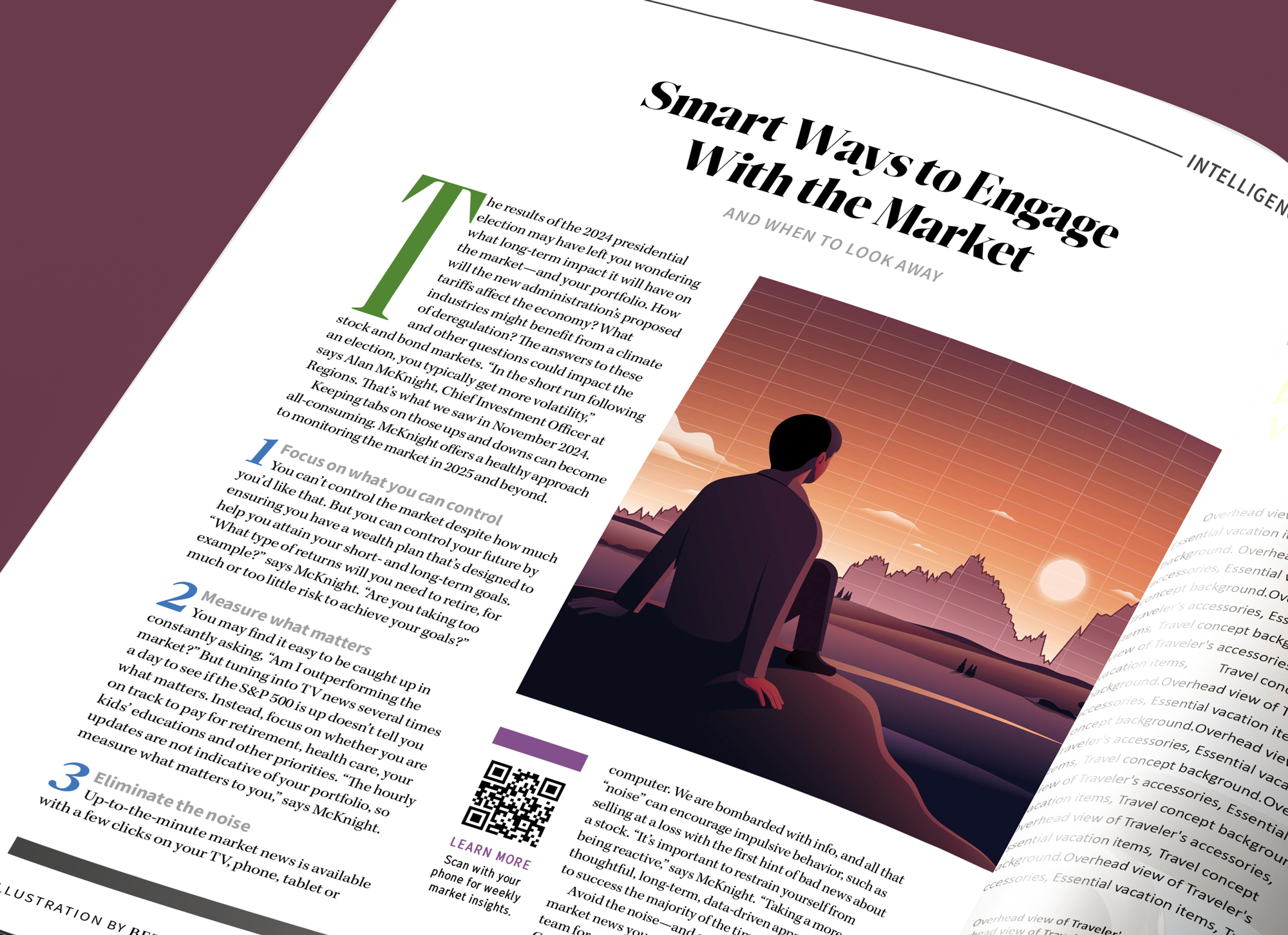 Smart Ways to Engage With the MarketInsights MagazineCreated for a story about monitoring the market by staying calm, leaning on the wealth plan you already have in place and keeping your eyes on the future.Prev / Next
